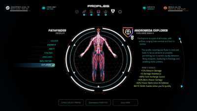 Its a very big very detailed game and getting to grips with everything can take 20-30 hours. This is a merge of Profiles Reworked and Jetpacks for All Profiles that I made because I prefer the way the jetpack looks but I still wanted the gameplay changes of Profiles Reworked. Its a very big very detailed game and getting to grips with everything can take 20-30 hours. This one focuses on Biotics which are augments to Ryders nervous system allowing for incredible powers. Donation Points system. Mass Effect Andromeda has abandoned traditional classes and opted for a more flexible Profile system instead. Each Profile gives stat bonuses and at least one Profile-specific ability such as a Combat Drone for the Engineer profile.