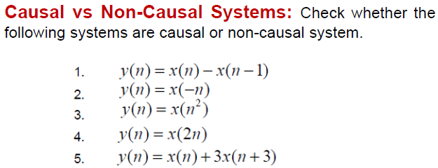 A system is the smallest relation satisfying the following three conditions. Identifying causal effects is an integral part of scientific inquiry spanning a wide range of questions such as understanding behavior in online systems effects of social policies or risk factors for diseases. A system that has some dependence on input values from the future in addition to possible dependence on past or current input values is termed a non-causal or acausal system and a system that depends solely on future input values is an anticausal system.